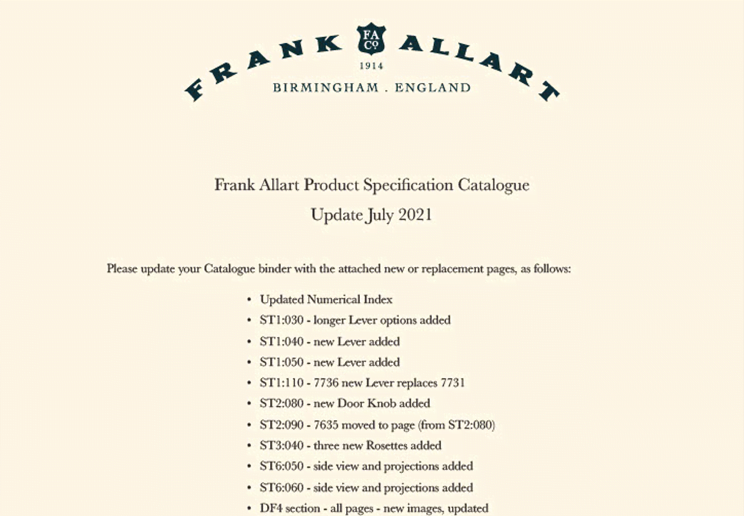 Our printed Catalogue has recently been updated to include several new products, along with some page amendments, and notification of a few discontinued lines. A pdf of these new and updated pages, with a brief overview of the changes, can be opened and downloaded here. The Product Overview on our website has already been updated. Should you have any queries relating to any of these updates, please contact our sales team for more information.