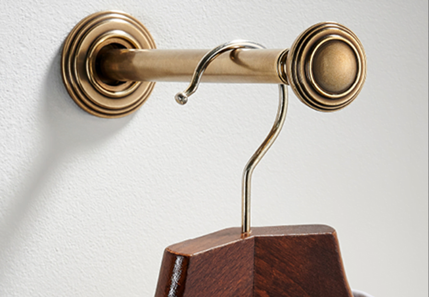 A full collection of Garment Rods (Valet Rods) are now available using Select and Precision Rosettes, along with the clients choice of pull knobs from our cabinet collection. With over 30 finishes to be mixed and matched as desired, thousands of creative combinations can be designed.